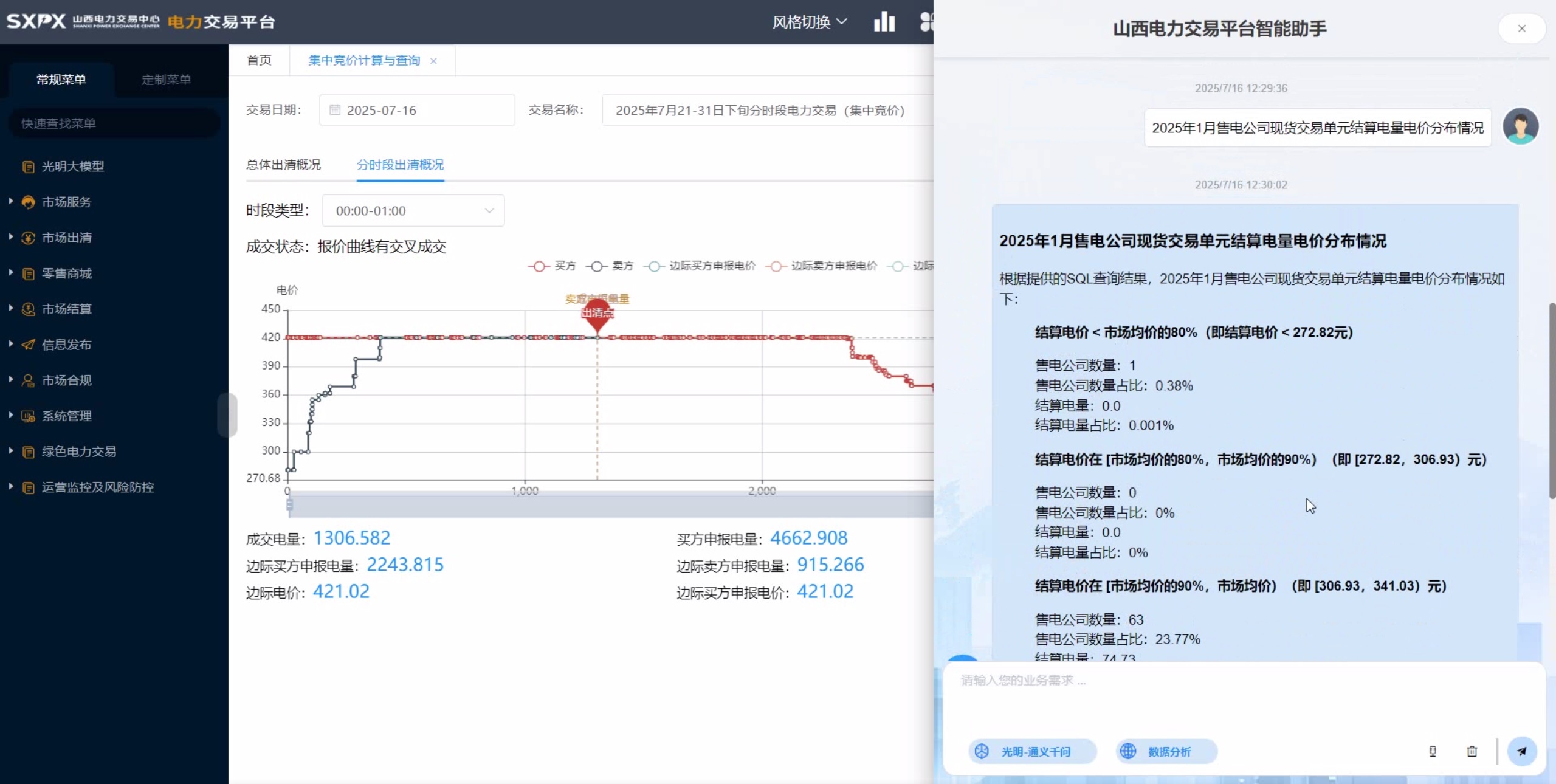 本次獲獎項目由國網(wǎng)山西電力數(shù)字化部、山西電力交易中心牽頭,國網(wǎng)山西信通公司提供技術支撐,聚焦電力交易業(yè)務痛點,積極響應新型電力系統(tǒng)與全國統(tǒng)一電力市場建設戰(zhàn)略。項目依托人工智能技術破解電力市場數(shù)據(jù)處理難題,構建起智能問答、智能導航、智能分析、智能防護四大核心場景,實現(xiàn)電力交易全流程智能化升級。項目從全國400余個參賽場景中突圍奪得大賽一等獎。
